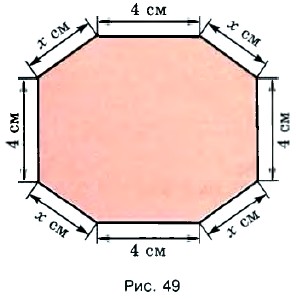 484. Периметр восьмиугольника 24 см (рис. 49). Составьте уравнение и решите его. Что означает корень этого уравнения? 485. Решите уравнение: а) 25z + 49 = 149;
