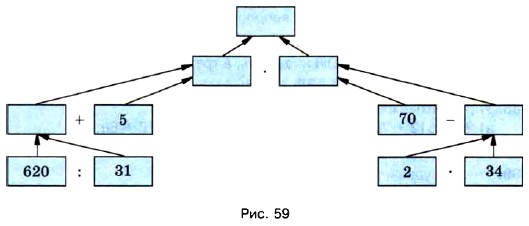 Найдите значение этого выражения. 630. Составьте программу вычисления выражения 381 • 29 - 7248 : 24 и найдите значение этого выражения. 631. Выполните действия по схеме (рис. 59).