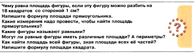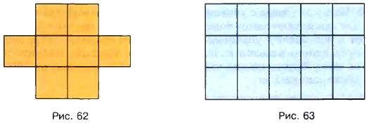 § 4. Площади и объёмы 18. Площадь. Формула площади прямоугольникаФигура на рисунке 62 состоит из 8 квадратов со стороной 1 см каждый. Площадь одного такого квадрата называют сантиметром. Пишут: 1 см2. Значит, площадь всей фигуры равна 8 см2.