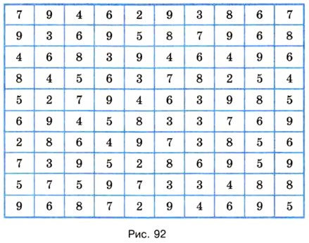 849. Подсчитайте по таблице (рис. 92): а) сколько раз встречается цифра 9;