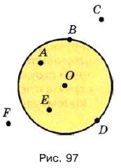 850. Какие из точек, отмеченных на рисунке 97: а) лежат на окружности;