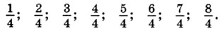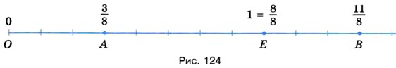 Правильная дробь меньше единицы, а неправильная дробь больше или равна единице (рис. 124). Например,