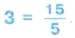 Запишем число 3 в виде дроби со знаменателем 5. Для этого надо найти такое число, при делении которого на 5 получилось бы 3. Таким числом является 3 • 5, то есть 15. Значит,
