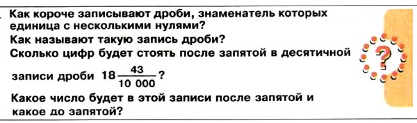 Числа со знаменателями 10, 100, 1000 и т. д. условились записывать без знаменателя.