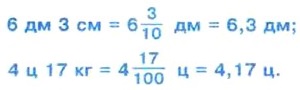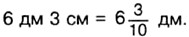 § 6. Десятичные дроби. Сложение и вычитание десятичных дробей 30. Десятичная запись дробных чиселВыразим расстояние 6 дм 3 см в сантиметрах: 6 дм 3 см = 63 см. Чтобы выразить то же расстояние в дециметрах, придётся использовать дроби. Так как Таким же образом находим, что