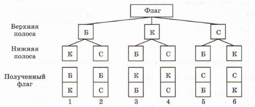 Для решения этой задачи мы рассмотрели все возможные варианты расположения цветных полос на флаге, или все возможные комбинации. Такие задачи называют комбинаторными, а раздел математики, занимающийся подобными задачами, — комбинаторикой.