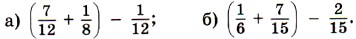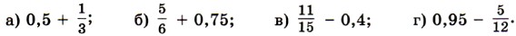 333. Найдите значение выражения 334. Найдите значение выражения 335. Петя играл в футбол 336. Тракторист вспахал в первый час 337. В первый день асфальтом покрыли 338. Длина прямоугольника 339. В палатку привезли 340. За первый месяц завод выполнил 341. При посадке овощей после одного дня работы остались незасаженными 342. Два поезда вышли одновременно из двух городов навстречу друг другу. Каждый час они приближались друг к другу на 343. Из села в город одновременно вышли две автомашины: грузовая и легковая. Каждый час грузовая автомашина отставала от легковой на 344. Один комбайн может убрать всё поле за 6 дней, а другой — за 4 дня. Какую часть поля уберут оба комбайна за один день? 345. Один мотор израсходует полный бак бензина за 18 ч, а другой — за 12 ч. Какую часть полного бака израсходуют оба мотора, если первый будет работать 5 ч, а второй — 7 ч? 346. Вычислите устно: