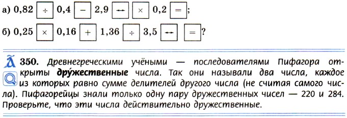 348. Найдите значение выражения: а) 0,72 - 0,б2; б) З3 - 17,5; в) 0,52 • 8; г) 2,6 : 0,13. 349. Значение какого выражения можно вычислить на микрокалькуляторе по программе: