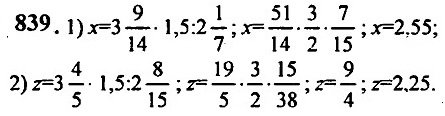 845. 2,4 : х = 1 : 3; x = 2,4 • 3; x = 7,2 см; длина детали 7,2 см; x : 7,2 = 2 : 1; x = 7,2 • 2; x = 14,4; длина детали на другом чертеже 14,4 см.