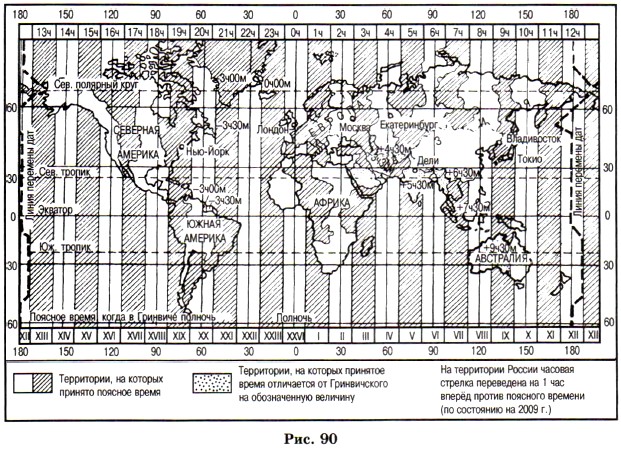 § 7. Умножение и деление положительных и отрицательных чисел 36. Деление (окончание)1167. На рисунке 90 показана карта мира с часовыми поясами. Определите с её помощью: а) поясное время в Екатеринбурге и Владивостоке, если в Москве полночь; б) поясное время в Лондоне, Токио, Нью-Йорке и