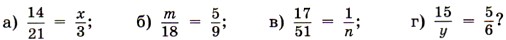 220. Запишите в виде обыкновенных дробей частные: 3 : 8; 12 : 32; 20 : 48; 5 : 12. Какие из полученных дробей равны? 221. Какое натуральное число надо записать вместо буквы, чтобы было верным равенство: