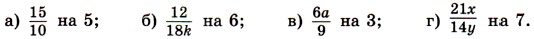 250. Один рабочий изготовил 16 одинаковых деталей за 6 ч, а другой — 24 такие же детали за 15 ч. Какой из них тратил на изготовление одной детали больше времени и на сколько? 251. Из 20 м ткани сшили 8 одинаковых платьев для взрослых, а из 12 м сшили 8 детских платьев. Сколько метров ткани пошло на одно детское платье и сколько — на одно платье для взрослых? 252. Применив распределительный закон, представьте числитель дроби в виде произведения, а затем сократите: