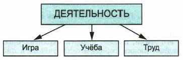 Ребёнок играет. Складывает из кубиков дом. Строит из песка крепость. Собирает модель из деталей конструктора. Играет в маму, укладывая спать куклу, в лётчика, продавца, водителя автомашины, космонавта. В игре он повторяет действия старших, приобретая первый опыт человеческой деятельности. Игра учит ребёнка планировать свои действия, намечать их цели, искать подходящие средства. В игровой деятельности развиваются многообразные человеческие качества. Наступает время, когда рядом с игровой развивается учебная деятельность. В ней шаг за шагом осваивается опыт. Изучая учебные тексты, читая произведения художественной литературы, решая задачи, выполняя разнообразные учебные задания, человек приобретает необходимые для жизни в обществе знания и умения, совершенствует мышление и речь, развивает свои творческие способности, приобретает профессию. Наряду с учёбой появляется трудовая деятельность. Сначала это работа по дому, затем, возможно, в школьной мастерской, на приусадебном участке и далее труд взрослого человека — профессиональная деятельность на производстве, в сфере услуг, интеллектуальная деятельность. Труд расширяет творческие возможности человека, способствует формированию целеустремлённости, самостоятельности, настойчивости, общительности и других человеческих качеств.