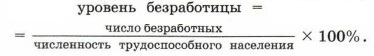 Уровень безработицы определяется как отношение числа безработных к численности трудоспособного населения, выраженное в процентах: