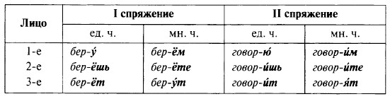 В зависимости от характера личных окончаний выделяют два спряжения.