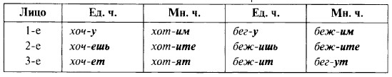 В современном русском языке выделяются и разноспрягаемые глаголы: хотеть, бежать. Эти глаголы спрягаются частично по I спряжению, частично по II спряжению.