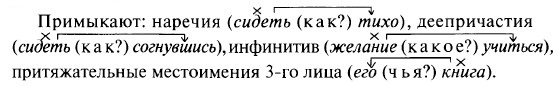 Примыкание — это связь по смыслу; примыкают неизменяемые слова или неизменяемые формы слов к главному слову словосочетания.