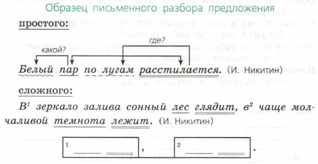 53. Спишите, расставляя пропущенные запятые. Выполните синтаксический разбор предложений. 1. Солнце уже довольно высоко ст..яло на чист..м небе но поля ещё бл..стели росой. 2. От деревьев от кустов от высоких3 ст..гов сена3 побежали3 длинные тени.5 (И. Тургенев) 54. Составьте 2 сложных предложения без союзов и 2 - с союзами. Одно из каждой пары предложений разберите устно, другое - письменно.