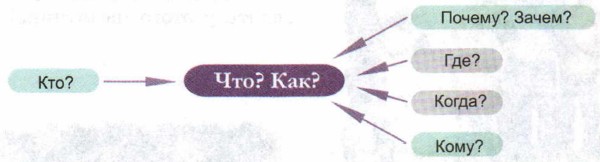 Итак, когда мы общаемся, мы должны иметь в виду компоненты речевой ситуации — кому, почему (зачем), где, когда мы говорим или пишем. И конечно, учитывать, как нас воспринимают окружающие. Кто говорит или пишет — тоже очень важно. Одно дело, если учитель посоветовал нам исправить ошибку, а другое дело — неуспевающий сосед по парте. От этих компонентов зависит, как мы строим или воспринимаем высказывание — ЧТО и КАК мы говорим, пишем. 7. Рассмотрите схему «Компоненты речевой ситуации». Назовите все вопросы в схеме. Сколько их? Почему все стрелки соединены с овалом, в котором находятся вопросы ЧТО? КАК?