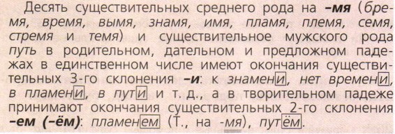 Буква и на конце слов на -мя в родительном, да- тельном и предложном падежах является также орфограммой «Буквы е и и в падежных окончаниях существительных». 255. Запишите слова время, стремя в форме дательного и предложного падежей в единственном числе и обозначьте в них указанную орфограмму.