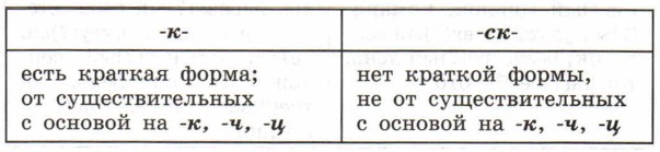 Имя прилагательное § 65. Различение на письме суффиксов прилагательных -к- и -ск-
