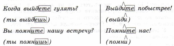 Во 2-м лице во множественном числе пишется: -ите в повелительном наклонении и в изъявительном наклонении у глаголов II спряжения; -ете только в изъявительном наклонении у глаголов I спряжения.