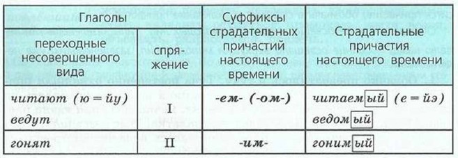 Рассмотрите таблицу. От основ каких глаголов и при помощи каких суффиксов образуются страдательные причастия настоящего времени?