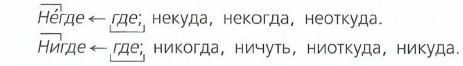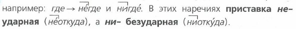 От вопросительных наречий (где, куда, откуда и др.) с помощью приставок не- и ни- образуются отрицательные наречия,