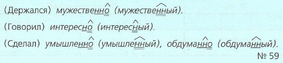 Применяя данное правило, р а с с у ж д а й т е так: (Держался) мужественно. Мужественно — это наречие и в нём пишется столько букв н, сколько в том слове, от которого оно образовано (мужественный). 257. Подберите к прилагательным однокоренные наречия. Запишите также словосочетания «