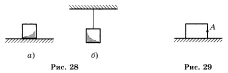 262. К бруску в точке А приложена сила величиной 50 000 Н, направленная вправо параллельно поверхности стола (рис. 29). Перерисуйте рисунок в тетрадь и изобразите приложенную силу в масштабе: 1 см = 10 кН. 263. Что является общей причиной падения на землю капель дождя, сосулек, снежинок, желудей? Какие физические тела при этом взаимодействуют? 264. Почему камень, брошенный вверх, летит замедленно, а вниз падает ускоренно? 265. Почему, стреляя по отдаленной мишени, следует целиться выше мишени? 266. Масса первого тела вдвое больше массы второго тела. На какое тело действует большая сила тяжести? Во сколько раз? 267. Согласно закону всемирного тяготения между любыми телами действуют силы всемирного тяготения, которые тем больше, чем больше массы взаимодействующих тел. Однако подвешенная на шнуре к потолку люстра не изменяет своего положения, когда в комнату вносят очень массивное тело, например холодильник. Почему? 268. Медальон висит на цепочке. На какое тело действует сила тяжести: на цепочку или на медальон?