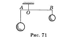 580. Как соотносятся длины плеч рычага, на концах которого уравновешены шары массой б кг и 2 кг (рис. 71)? 581. Большая и маленькая гири уравновешены на невесомом рычаге. рычага 1:5. Масса большой гири 2,5 кг. Найдите массу меньшей гири. 582. Меньшая сила, действующая на рычаг, равна 5 Н. Найдите большую силу, если плечи рычага 0,1 м и 0,3 м. 583. Найдите момент силы величиной 5 Н, плечо которой равно 40 см. 584. Изменится ли момент силы, если плечо увеличить в 3 раза, а силу уменьшить в 2 раза? Если да, то как именно? 585. На концах рычага действуют силы в 20 Н и 80 Н. Рычаг находится в равновесии. Расстояние между точками приложения сил 1 м. Где находится точка опоры?