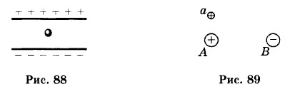 Электрические явления 38. Электризация тел при соприкосновении. Взаимодействие заряженных тел. Два рода зарядов. Электроскоп. Проводники и непроводники электричества. Электрическое поле. Делимость электрического заряда. Электрон. Строение атомов. Объяснение электрических явлений939. Шар заряжен положительно. Ученик дотронулся до него пальцем. Как изменился заряд шара? 940. Металлическая сфера имеет заряд, равный -1,6 нКл. Сколько избыточных электронов на сфере? 941. После того как стеклянную палочку потерли, ее заряд стал равен 3,2 мкКл. Сколько электронов было снято с палочки при трении? 942. На металлическом шарике находится 4,8 • 1010 избыточных электронов. Чему равен его заряд? 943. Электроскоп зарядили до -3,2 • 10-10 Кл. Сколько избыточных электронов на электроскопе? 944. Можно ли наэлектризовать кусок металла? Какие условия для этого необходимы? 945. При взаимном трении электризуются оба тела, но зарядами противоположного знака. Каким опытом это можно продемонстрировать? 946. На тонких шелковых нитях подвешены два одинаковых пробковых шарика, один заряженный, другой — незаряженный. Как определить, какой шарик заряжен? 947. Два разных по величине заряда находятся на некотором расстоянии друг от друга. Между ними помещен третий заряд одинакового с ними знака, который остается в равновесии. Ближе к какому из двух зарядов находится третий? 948. Чем объяснить, что легкий пробковый шарик сначала притягивается к наэлектризованной палочке, а затем отталкивается от нее? 949. Между двумя горизонтальными противоположно заряженными пластинами висит в воздухе незаряженная капля воды (рис. 88). Почему капля не падает вниз? 950. Электронная теория утверждает, что в металлических проводниках свободно передвигаться могут только электроны — отрицательные заряды. Тогда как объяснить, что металлический предмет может быть заряжен положительно? 951. На рисунке 89 изображены два противоположно заряженных тела А и В. Около тела А поместили легкий положительно заряженный шарик а. Что произойдет с шариком а? Начертите кривую, по которой будет двигаться шарик а.
