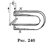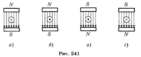 1770*. На рисунке 241 изображены четыре проводника с током, расположенные между полюсами магнитов. Как движется каждый из них?