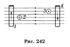 1771*. Четыре проводника с током находятся в магнитном поле (рис. 242). Как движется каждый из них? Взаимодействуют ли они между собой?