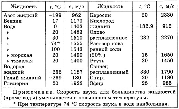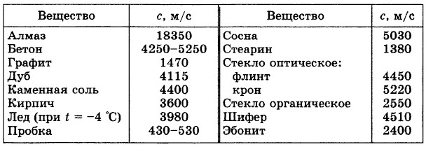Скорость с звука в различных твердых веществах (при t = 20 С)