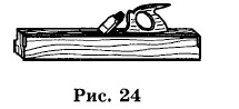 175. Для регулирования выступа лезвия рубанка из колодки рубанка (рис. 24) ударяют молотком то по задней части колодки, то по передней. В каких случаях по какой части колодки надо ударять? Почему? 176. Почему при катании на коньках, если конек зацепится за что-нибудь, человек падает? 177. В каком направлении наклоняются люди, стоящие в движущемся вагоне, при внезапной остановке вагона? Почему? 178. При легких наковальнях паровых молотов удары о наковальню настолько сильно сотрясают почву, что на соседних постройках появляются трещины. При достаточно тяжелых наковальнях сотрясение почвы меньше. Почему? 179. Какую вагонетку легче остановить при ее движении по инерции: пустую или груженую? Почему? 180. Почему при выстреле из орудия снаряд приобретает большую скорость, а само орудие — значительно меньшую? 181. Может ли ракета лететь в безвоздушном пространстве? 182. Почему при взлете птицы тонкая ветка, на которой сидела птица, сначала опускается, а потом уже поднимается?
