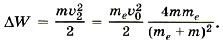 где me и m — массы электрона и молекулы; υ1 и υ2 — их скорости после столкновения. Решая эту систему относительно υ1 и υ2, получаем Энергия, передаваемая молекуле, Из полученного выражения следует, что молекуле передаётся очень маленькая часть первоначальной энергии электрона, так как me << m. При неупругом столкновении выполняется только закон сохранения импульса meυ0 = (m + me)υ, и, таким образом, электрон теряет энергию