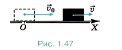 Р е ш е н и е. Выберем оси координат так, чтобы движение шайбы происходило вдоль какой-нибудь координатной оси, например вдоль оси ОХ. За положительное направление оси ОХ примем направление вектора начальной скорости (рис. 1.47). Из определения ускорения следует: ах = (υ - υ0)/t = -2 м/с2.