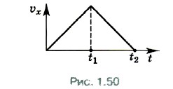 3. На рисунке 1.50 показан график зависимости проекции скорости тела от времени. Постройте график зависимости модуля перемещения от времени.