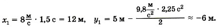 Отрицательный знак проекции скорости означает, что в конце второй секунды скорость мяча направлена противоположно положительному направлению оси Y, т. е. вниз. Задача 2. Из точки А брошен горизонтально шарик со скоростью υ0 — 8 м/с. Определите положение шарика относительно точки О через t = 1,5 с от начала его движения. Точки А и О находятся на одной вертикали на расстоянии 5 м друг от друга и точка О ниже точки А. Сопротивлением воздуха можно пренебречь.