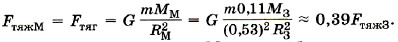 На Луне и других планетах сила тяжести отличается от силы тяжести на Земле, так как изменяется сила тяготения. Сила тяготения, как мы видели, определяется массой планеты и её радиусом. Масса и радиус Луны меньше, чем масса и радиус Земли, поэтому сила тяжести на Луне существенно меньше. Так, на тело массой 1 кг на Луне действует сила тяжести, равная 1,7 Н. Рассчитаем силу тяжести, действующую на тело массой 1 кг, находящееся на поверхности Венеры, при этом пренебрежём влиянием вращения Венеры вокруг собственной оси. Это можно сделать потому, что период вращения Венеры вокруг собственной оси почти в 10 раз больше, чем аналогичный период вращения Земли. Масса Венеры МB = 0,82М3, радиус RB = 0,95 R3. Тогда