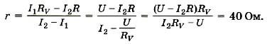 Тогда Р2/Р1 = 0,4. Задача 3. При подключении вольтметра сопротивлением RV = 200 Ом непосредственно к зажимам источника он показывает U = 20 В. Если же этот источник замкнуть на резистор сопротивлением R = 8 Ом, то сила тока в цепи I2 = 0,5 А. Определите ЭДС и внутреннее сопротивление источника. Р е ш е н и е. По закону Ома для полной цепи в первом случае сила тока