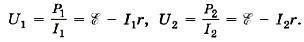 Для ЭДС источника запишем: Ε = I2(R + r) = 24 В. Задача 4. Определите силу тока короткого замыкания для источника, который при силе тока в цепи I1 = 10 А имеет полезную мощность Р1 = 500 Вт, а при силе тока I2 = 5 А — мощность Р2 = 375 Вт. Р е ш е н и е. Сила тока короткого замыкания