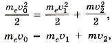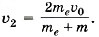 где me и m — массы электрона и молекулы; υ1 и υ2 — их скорости после столкновения. Решая эту систему относительно υ1 и υ2, получаем Энергия, передаваемая молекуле, Из полученного выражения следует, что молекуле передаётся очень маленькая часть первоначальной энергии электрона, так как me << m. При неупругом столкновении выполняется только закон сохранения импульса meυ0 = (m + me)υ, и, таким образом, электрон теряет энергию