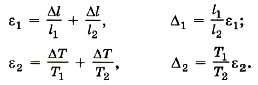 Стеклянная трубка открытым концом вверх помещается вертикально на 3—5 мин в цилиндрический сосуд с горячей водой (рис. Л.7, а). В этом случае объём воздуха V1 равен объёму стеклянной трубки, а температура — температуре горячей воды Т1. Это — первое состояние. Чтобы при переходе воздуха во второе состояние его количество не изменилось, открытый конец стеклянной трубки, находящейся в горячей воде, замазывают пластилином. После этого трубку вынимают из сосуда с горячей водой и замазанный конец быстро опускают в стакан с водой комнатной температуры (рис. Л.7, б), а затем прямо под водой снимают пластилин. По мере охлаждения воздуха в трубке вода в ней будет подниматься. После прекращения подъёма воды в трубке (рис. Л.7, в) объём воздуха в ней станет равным V2 < V1, а давление р = ратм - ρgh. Чтобы давление воздуха в трубке вновь стало равным атмосферному, необходимо увеличивать глубину погружения трубки в стакан до тех пор, пока уровни воды в трубке и стакане не выровняются (рис. Л.7, г). Это будет второе состояние воздуха в трубке при температуре Т2 окружающего воздуха. Отношение объёмов воздуха в трубке в первом и втором состояниях можно заменить отношением высот воздушных столбов в трубке в этих состояниях, если сечение трубки постоянно по всей длине Поэтому в работе следует сравнить отношения Порядок выполнения работы 1. Подготовьте бланк отчёта с таблицей 10 для записи результатов измерений и вычислений (инструментальные погрешности определяются с помощью таблицы 1).