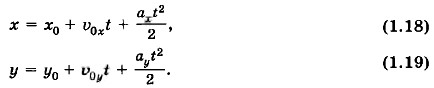 Однако удобнее найти уравнение траектории, т. е. зависимость у от х. Чтобы получить это уравнение, нужно исключить время из уравнений (1.20) и (1.21). Из уравнения (1.20) имеем
