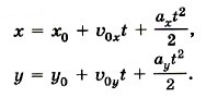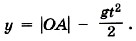 При сделанном выборе начала координат и направлений осей ОХ и OY имеем х0 = 0, у0 = |ОА|, υ0x = υ0, υ0y = 0, ах = О, ау = -g. Поэтому х = υ0t,
