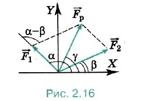 Равнодействующую силу также можно найти по теореме косинусов (рис. 2.16): F2p = F21 + F22 + 2F1F2cos(α - β).