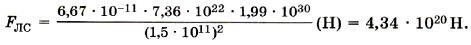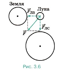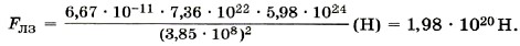 Задача 2. Определите равнодействующую силу, действующую на Луну, считая, что силы притяжения к Земле и Солнцу взаимно перпендикулярны. Массы Луны, Земли и Солнца соответственно равны mЛ = 7,36 • 1022 кг; m3 = 5,98 • 1024 кг; mC = 1,99 • 1030 кг; расстояния от Луны до Земли и от Луны до Солнца соответственно равны rЛЗ = 3,85 • 108 м, rЛС = 1,5 • 1011 м. Р е ш е н и е. По условию задачи силы гравитационного притяжения Луны к Земле и Солнцу взаимно перпендикулярны (рис. 3.6). Рассчитаем силу гравитационного притяжения Луны к Земле.