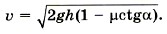 Р е ш е н и е. Согласно теореме об изменении кинетической энергии изменение кинетической энергии автомобиля равно алгебраической сумме работ всех сил, действующих на него. На автомобиль действуют (рис. 5.5) сила тяжести m Силы тяжести и нормальной реакции опоры перпендикулярны перемещению, поэтому работы их на данном перемещении равны нулю. Тогда 0 - mυ2/2 = -Fтр1s1 - Fтp2s2 = -(μ1s1 + μ2s2)N. Очевидно, что N = mg. Подставив N в уравнение, получим mυ2/2 = (μ1s1 + μ2s2)mg. Окончательно